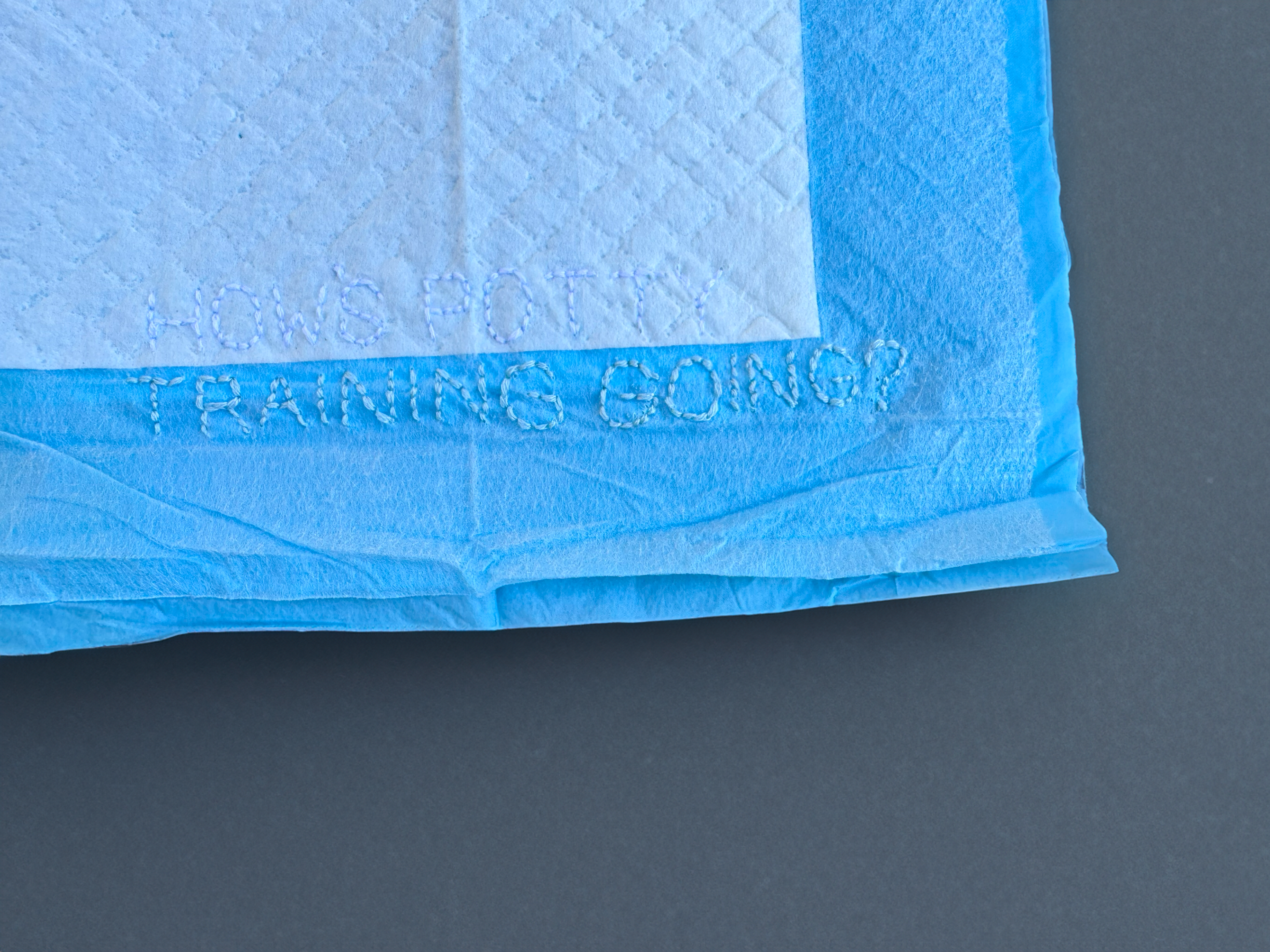 Embroidery thread on absorbent training pad